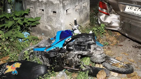 สลด กระบะเสยท้าย จยย.พ่วงข้าง เทกระจาดตกข้างทาง เจ็บ 4 ดับ 1 ราย