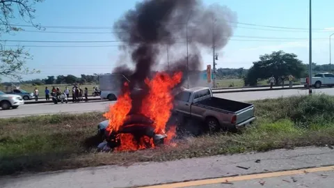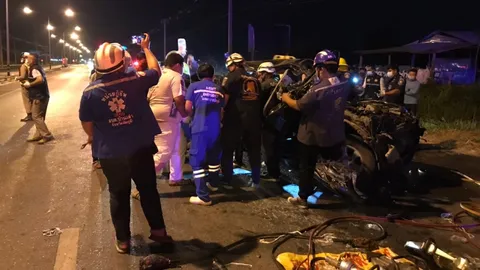 ไฟคลอกโจ๋ 17 ดับคารถ หลังตาเห็นด่าน ตร. รีบถอย กระบะวิ่งตามมาเสยท้าย