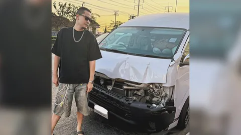 อุบัติเหตุส่งท้ายปี เป้ วงมายด์ เปิดภาพรถถูกชนหน้าหลัง แฟนๆ แห่ขอเลขทะเบียนรถ