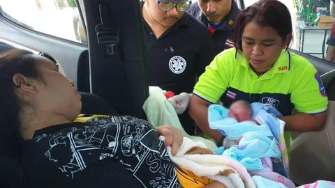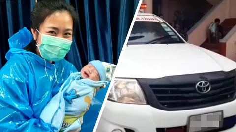 กู้ภัยนำสาวปวดท้องแก่ แต่กลับคลอดบนรถ คอหวยส่องทะเบียนแอบหวังรวย