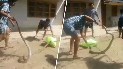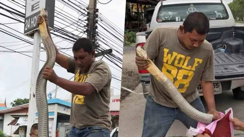 พาไปชมผู้เชี่ยวชาญจับ "งูจงอาง" ด้วยมือเปล่า ตัวใหญ่บิ๊กเบิ้ม ยาว 4.25 ม. (คลิป)