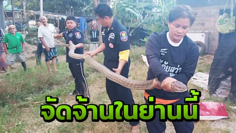กู้ภัยยังตะลึง ชาวบ้านขอแรงช่วยจับงู เจอจงอางยักษ์ยาวเกือบ 5 เมตร