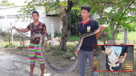 ลูกแมวเกือบไม่รอด! งูเหลือมยักษ์4เมตร เตรียมเขมือบ โชคดีกู้ภัยช่วยทัน