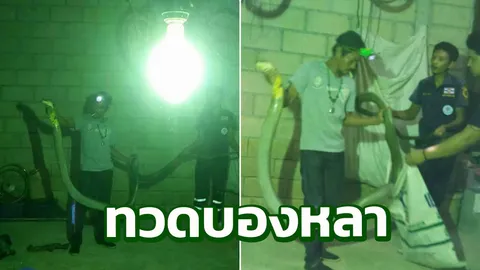 โคตรงู! เหลือม6ม. เลื้อยตัดหน้า จยย.-ตร.ช่วยจับ คนส่องทะเบียนเสี่ยงโชค