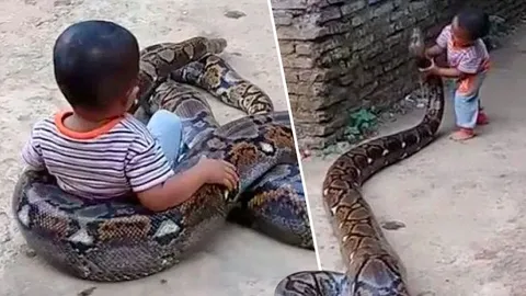 เด็กไร้เดียงสาเล่นกับงูยักษ์