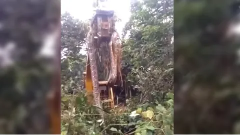 นาทีสยอง ใช้รถเครนยก งูอสูรยักษ์ ออกจากป่าบนเกาะในแคริบเบียน (คลิป)