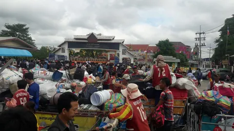 คลื่นแรงงานเขมร ทะลักกลับภูมิลำเนานับหมื่น เต็มหน้าด่านอรัญฯ-บ้านแหลม (คลิป)