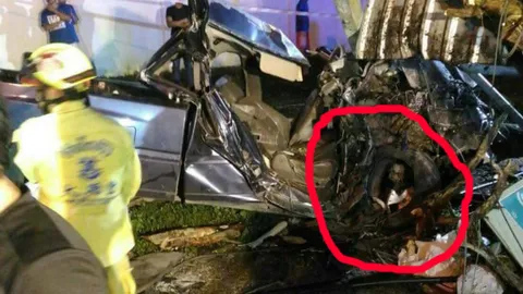 สาวโพสต์เล่าเหตุการณ์เฉียดตาย รถคว่ำ พังยับ ถ่ายภาพติดเงาปริศนา