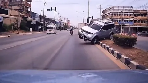 เปิดนาทีระทึก รถยนต์เกียร์ขัดข้อง พุ่งข้ามเกาะกลางถนน เฉี่ยวชนรถชาวบ้าน