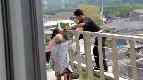 ภาพนาทีชีวิต! พ่อแม่คว้ามือลูกชาย รักคุดจะโดดตึก