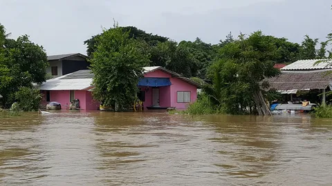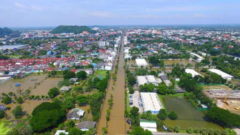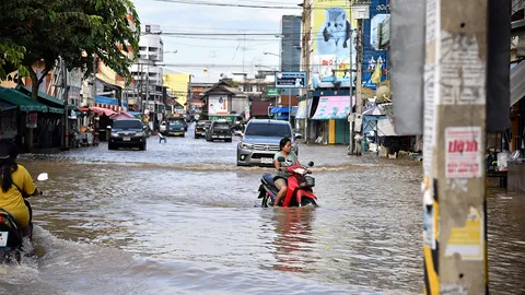 เพชรบุรีลุ้นน้ำลด ถนนสายหลักยังท่วมสูง 40 ซม. ชาวบ้านต้องใช้เรือ