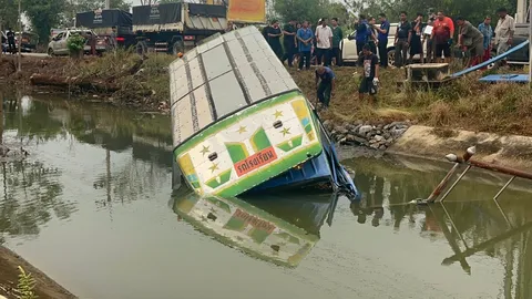 เปิดนาที “รถรับส่งนักเรียน” เสียหลักพุ่งตกคลองหลังฝนตก โชคดีไม่มีผู้บาดเจ็บสาหัส