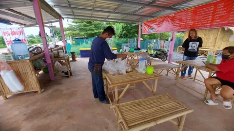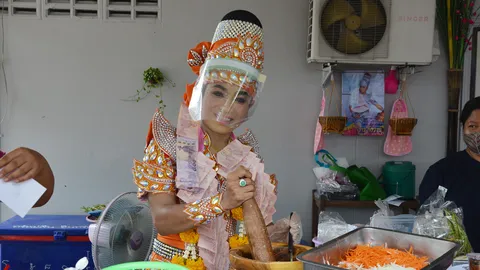 แม่ยกแห่อุดหนุน "พระเอกลิเก" ผันตัวขายส้มตำ ควงสากสู้วิกฤติ "โควิด-19"