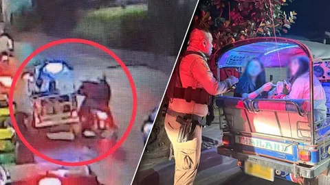 คู่รักนักท่องเที่ยว เล่นจ้ำจี้บนรถตุ๊กตุ๊ก โชเฟอร์ห้ามไม่ฟัง