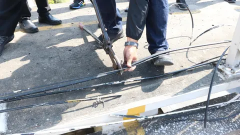 กทม. สั่งเจ้าหน้าที่ตัดสายสื่อสารกีดขวางบนสะพานลอย ปากซอยกรุงธนบุรีแล้ว
