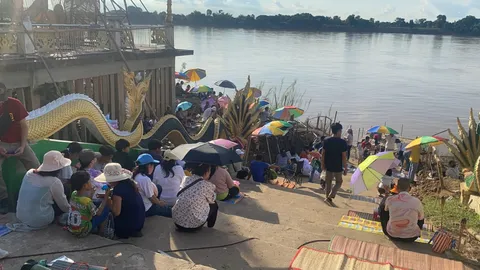 บรรยากาศจุดชม “บั้งไฟพญานาค” ที่หนองคาย นักท่องเที่ยวแห่จับจองพื้นที่