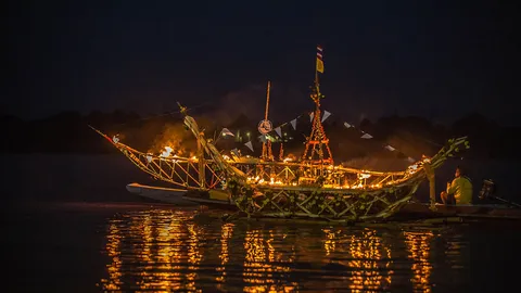ไหลเรือไฟโบราณนครพนม! นทท.แห่เที่ยวงาน จัดถวายเป็นพระราชกุศล 'พ่อหลวง'