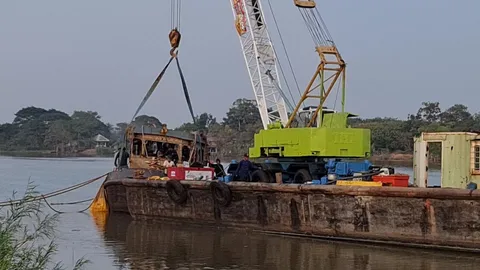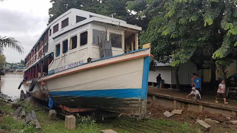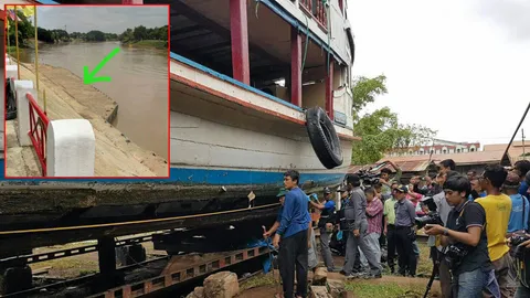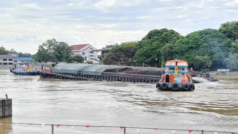 เร่งกู้เรือลำเลียงถ่านหิน กระแทกเขื่อนกันตลิ่งริมแม่น้ำป่าสักที่อยุธยา