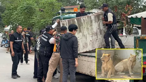 เตรียมยึดสิงโต 2 ตัว เจ้าของไม่แจ้งครอบครอง ป้าข้างบ้าน บอกไม่กลัว-มันไม่ดุ (คลิป)