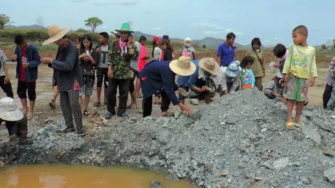 ชาวบ้านแตกตื่น แห่เก็บหินบริเวณสร้างถนนสี่เลน เชื่อเป็นแร่ทองคำ