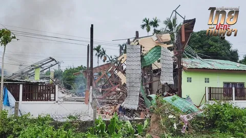 BM21 ตกใส่บ้านประชาชน อ.กันทรลักษ์ พังยับทั้งหลัง โชคดีอพยพทัน ไม่มีผู้บาดเจ็บ