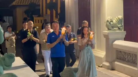 “อนุทิน” ควง “จ๋า” เวียนเทียนวันมาฆบูชา ประชาชนขอถ่ายรูป ชมหล่อเหมือนเด็ก