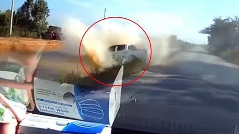 กล้องหน้ารถจับภาพได้ รถ SUV หลุดโค้งชนหกล้อ พลิกคว่ำทับคนขับดับ