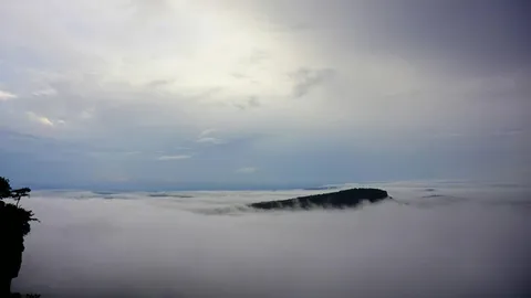 นักท่องเที่ยว แห่ชมคลื่นทะเลหมอก 'ผามออีแดง' เต็มอช.เขาพระวิหาร