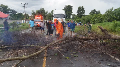 พายุฝนกระหน่ำกันทรลักษ์ ต้นไม้หักโค่นขวางถนน บ้านหลังคาเปิด 2 หลัง