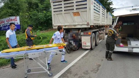 ขี่ จยย.มองมือถือไม่ดูถนน หนุ่มหนองคายชนท้ายรถพ่วงจอดริมทาง เจ็บสาหัส