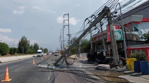 ลมกระโชกแรง-ฟ้าผ่า ทำ "เสาไฟแรงสูง" หัก 3 ต้น โชคดีไม่มีผู้ได้รับบาดเจ็บ