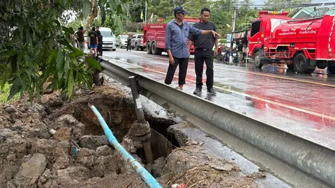 น้ำเจ้าพระยากัดเซาะใต้ถนน ทรุด 4 เมตร น้ำทะลักท่วม รร.วัดเมตารางค์ สั่งปิด 2 วัน