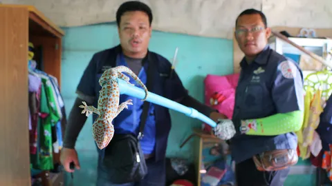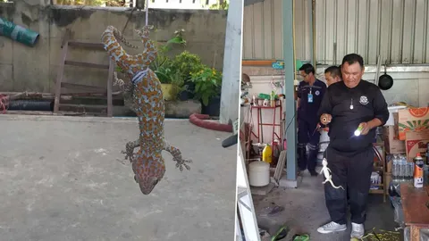 สะดุ้ง! ตุ๊กแกตัวเท่าแขนเด็ก ตกใส่หลังคา ร้องกู้ภัยจับไปปล่อย