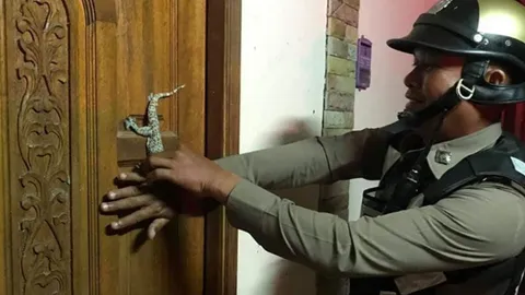 คุมตัวออกจากที่เกิดเหตุ ตุ๊กแกขวางประตู เข้าห้องไม่ได้ แจ้งตำรวจช่วยจับ