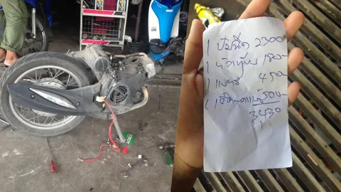 เหลือแต่ซาก! สาวสุดทน มอเตอร์ไซค์เหลือแค่โครง ช่างกลับทำไม่รู้ไม่ชี้