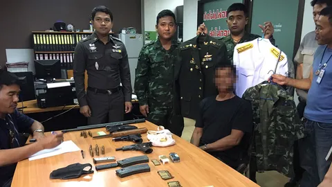 รวบหนุ่มใหญ่ซุกปืน-กระสุนในรถ เจอเครื่องแบบทหาร อ้างใส่แล้วสบายดี