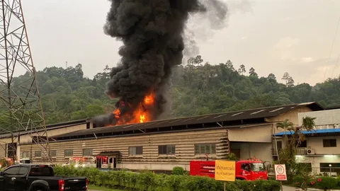 ไหม้ระทึก โรงงานยางพารา ไฟเผาวอด-ควันดำโขมง จนท.เร่งฉีดน้ำดับ