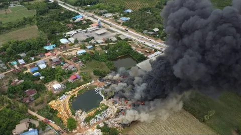 กว่า 7 ชม. เพลิงไหม้โรงงานรีไซเคิลขนาดใหญ่ ชาวบ้านรอบๆ อพยพหนีกลางดึก (คลิป)