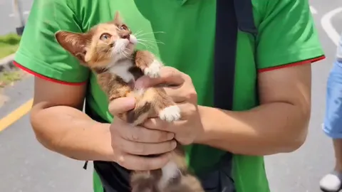 เห็นแล้วใจฟู ชื่นชม 2 หนุ่มไม่ปล่อยผ่าน จอดรถช่วยลูกแมวโดนฝูงสุนัขล้อมกัด