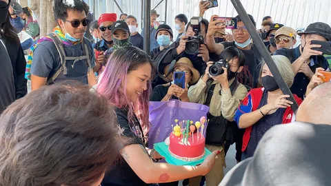 "ทราย" แม่ยกแห่งชาติ เจอเซอร์ไพรส์เค้กวันเกิด หลังรับทราบข้อหา ม.112