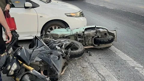 น้ำมันรั่วเป็นทางยาว บนถนนบ้านสันกลาง จ.เชียงใหม่ ทำรถ จยย. ล้ม คนเจ็บนับ 10
