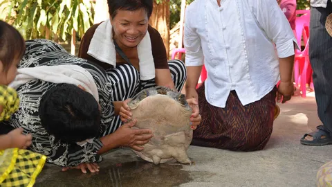ตะพาบร่วมบวชต้นพะยูง ชาวบ้านเชื่อมาให้โชค แห่ขอหวย!
