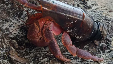 สลดใจ นักท่องเที่ยวบันทึกภาพ "ปูเสฉวน" ใช้เศษขวดแก้วเป็นบ้านแทนเปลือกหอย