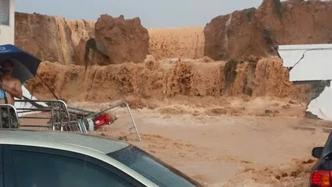 ฝนถล่มน้ำทะลัก พัทยาจมบาดาล นักกีฬาวินด์เซิร์ฟกางใบพร้อมรับ