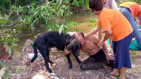 สลด "สุนัข" ตกน้ำ "เจ้าของ" โดดช่วยจมดับ นั่งเฝ้าศพ-เห่าหอนไม่ห่าง
