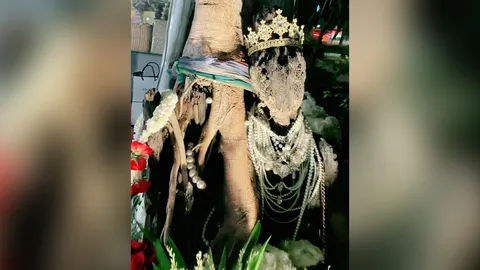 คอหวยคึกคัก แห่ต่อคิวรอขอ "เลขเด็ดงวดนี้" จาก "พี่สาว" หุ่นไม้ใต้ต้นโพธิ์
