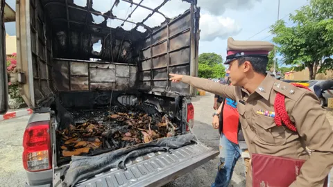 ไฟไหม้กระบะตู้ทึบ ย่างสดไก่ชนระดับแชมป์ กว่า 20 ตัว