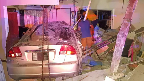 สยองซีวิคพุ่งใส่อู่รถ กวาดห้องนอนพ่อแม่-ลูกอีก 2 (คลิป)