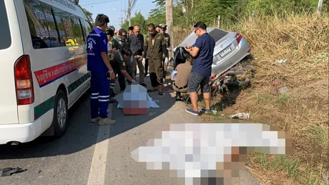 เก๋งชน จยย.พ่วงข้าง อัด 3 ศพ คาดหลับใน