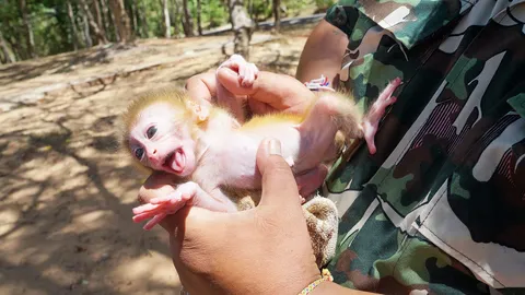 ภาพสลดใจ "ชะนีน้อย" ของกลางที่ถูกช่วยจากแก๊งค้าสัตว์ป่า เอวถูกรัดจนเป็นแผล